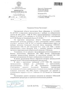В этой связи постановление об отказе в возбуждении уголовного дела прокуратурой отменено, материал проверки возвращён начальнику Тобольского межрайонного отдела МВД России для передачи в следственный отдел по г. Тобольску. Рассмотрение материала взято на контроль Тобольской межрайонной прокуратуры.