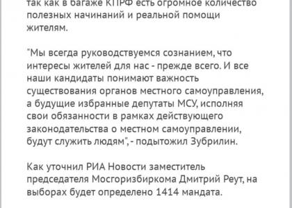 Мы уверены в серьёзной поддержке наших кандидатов со стороны избирателей, в нашем багаже огромное количество полезных начинаний и реальной помощи жителям. Есть несколько законов, касающихся местного самоуправления, которые мы внесли, и сегодня они работают, придавая органам местного самоуправления больше возможностей в части борьбы с коррупцией. Поэтому КПРФ понимает всю ответственность и важность участия в жизни районов нашего города. Мы всегда руководствуемся сознанием, что интересы жителей для нас - прежде всего! И все наши кандидаты понимают важность существования органов местного самоуправления, а, будущие избранные депутаты МСУ, исполняя свои обязанности в рамках действующего законодательства о местном самоуправлении, будут служить людям!