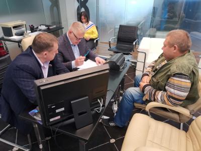 После закрытия весенней сессии Московской областной Думы, депутаты продолжают работать в своих территориальных округах. 12 июля, в ходе рабочего визита в город Ступино, заместитель Председателя Московской областной Думы, руководитель фракции КПРФ Александр Наумов провел прием граждан. В проведении приема принял участие депутат-коммунист Совета депутатов городского округа Ступино Игорь Колтыгин и сотрудник Окружного управления социального развития № 13 Министерства социального развития Московской области Светлана Сотникова.