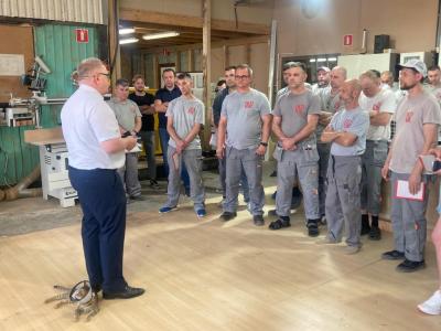 В ходе рабочего визита в городской округ Химки, кандидат в Губернаторы Московской области от КПРФ, заместитель Председателя Московской областной Думы - руководитель фракции КПРФ - Александр Наумов посетил мебельное предприятие ООО «ХСР».