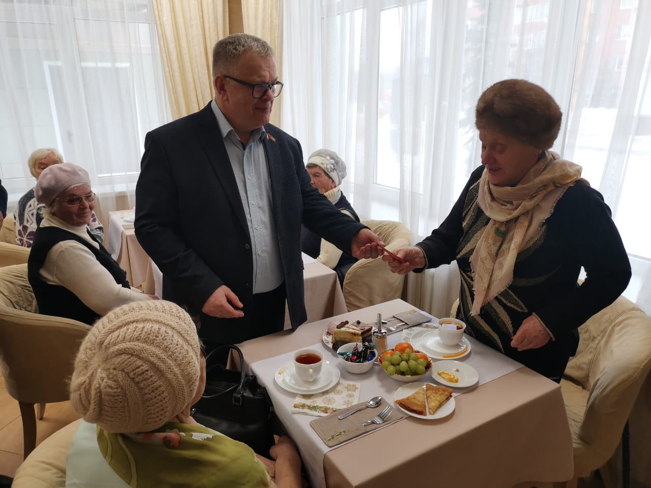 Затем, в ходе чаепития, организованного директором гостиницы Ларисой Эрмиш, Александр Наумов и Владимир Барсуков вручили удостоверения организации «Дети войны».