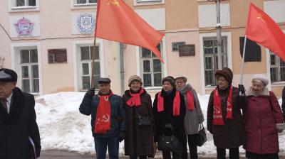 С утра 31 января коммунисты Калужской городской организации КПРФ с красными знаменами, ветераны Вооруженных Сил, ветераны труда, совет ветеранов Московского округа г.Калуги, жители города собрались у задрапированной мемориальной доски