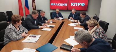 29 февраля, перед 78 пленарным заседанием Московской областной Думы, состоялось заседание фракции КПРФ в региональном парламенте. В нем участвовали: заместитель Председателя Московской областной Думы - руководитель фракции КПРФ Александр Наумов, заместитель Председателя Московской областной Думы Константин Черемисов, Председатель Комитета по местному самоуправлению Владимир Барсуков, депутаты: Олег Емельянов, Елена Мокринская, Татьяна Никитас, Татьяна Ордынская, Марк Черемисов.