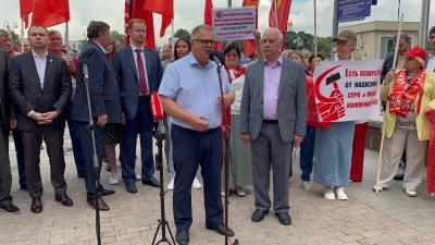 Перед присутствующими выступил секретарь МК КПРФ, заместитель Председателя Мособлдумы - руководитель фракции КПРФ Александр Наумов. В своем обращении спикер отметил, что все собрались у Представительства Евросоюза, чтобы предупредить и призвать к разуму лидеров иностранных государств.