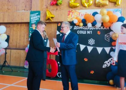 Далее зампред Мособлдумы Александр Наумов наградил учеников школы – призеров всероссийских соревнований по волейболу почетными грамотами и благодарностями министерства образования Московской области.
