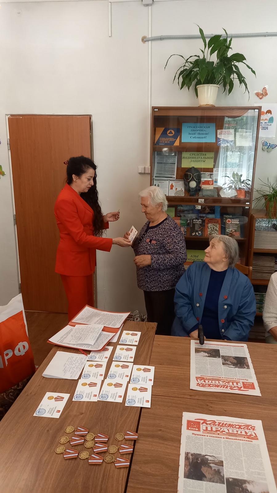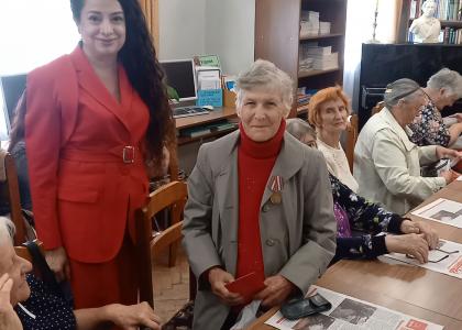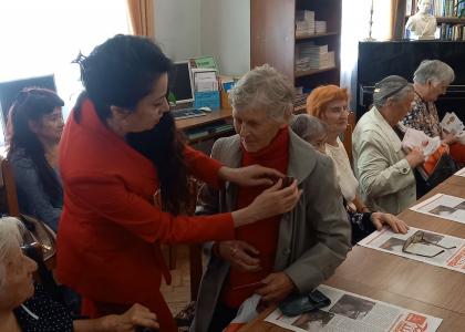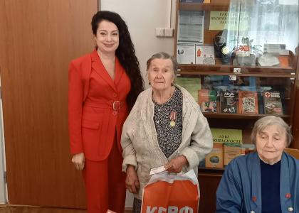 Первый секретарь Калужского горкома КПРФ, руководитель фракции КПРФ в Городской Думе Калуги Марина Костина вместе с коммунистами Калужского городского отделения КПРФ организовали для ветеранов небольшой концерт, вручили памятные медали «Дети войны», цветы и подарки: