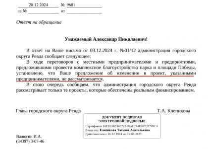 «Тем не менее, госпожа Клепикова отказалась обсуждать этот вариант и просто написала, что это «предложение не рассматривается». И, всё! Почему не рассматривается? Почему самый лучший компромиссный вариант, не требующий затрат из бюджета, отметается на корню? Никаких объяснений», — подчеркнул Александр Ивачёв.