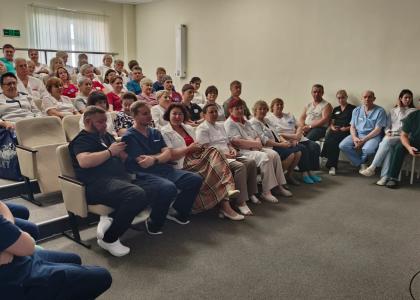 Денис Сергеевич поблагодарил врачей, медсестер и санитаров за ежедневную работу по охране здоровья граждан, проявленные мужество, терпение и мастерство.