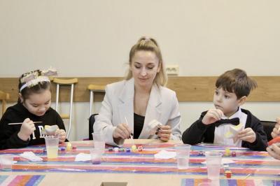 Акция традиционно началась с раскрашивания игрушек «Шар-папье». Дети и взрослые не только вместе выбирали цвета для работы, но радостно общались между собой.
