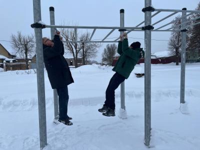 В ходе встречи селяне показали пример выполнения спортивных упражнений на тренажерах, а руководитель фракции КПРФ Александр Наумов вместе с одним из учащихся местной школы устроили мини соревнования по подтягиванию – оба участника состязания подтянулись по 15 раз.