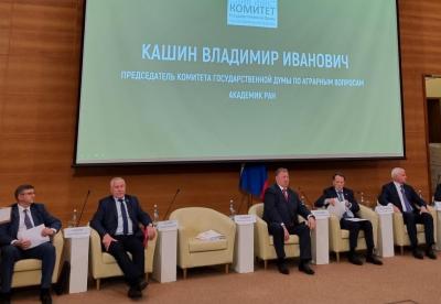 Председатель Комитета Государственной Думы по аграрным вопросам Владимир Кашин выступил с базовым докладом, в котором озвучил приоритетные направления развития АПК и совершенствования законодательства по обороту земель сельхозназначения. Владимир Кашин подчеркнул, что земли сельскохозяйственного назначения и сельскохозяйственные угодья – это бесценный клад, это достояние всей страны, и поэтому эти земли не должны быть объектом безответственного использования. Он отметил: «Бесценное богатство нашей страны – это наши земли, которые мы будем беречь и не позволим их разбазаривать. Нельзя допустить, чтобы села опустели - без деревни не будет России. Наша великая Россия всегда была и всегда будет сильной и непобедимой Державой, которая опирается на сельскую глубинку». Владимир Кашин обозначил, что за 10 лет аграрным комитетом Госдумы принято 36 федеральных законов по совершенствованию земельного законодательства, авторами 18 законов являются депутаты аграрного комитета. Среди них закон «двух ключей», при котором регионы обязаны согласовывать с Минсельхозом перевод земель сельхозназначения в иные категории.