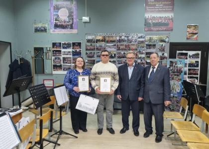 Руководитель фракции КПРФ Александр Наумов поздравил дирижера оркестра духовых инструментов Виктора Козлова и ведущего методиста Дома культуры Юлию Сергееву с прошедшими юбилеями и вручил им награды Московской областной Думы. Виктор Козлов многие годы руководит оркестром, пользующимся популярностью в Кашире и Подмосковье. Юлия Сергеева организовала в Доме Культуры студию актерского мастерства и ораторского искусства. Александр Наумов пожелал юбилярам новых творческих начинаний и дальнейших успехов в их деятельности.