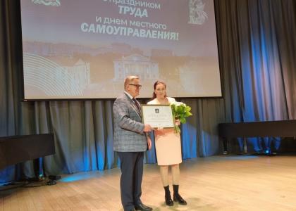 Зампредседателя Мособлдумы Александр Наумов вручил награды регионального парламента отличившимся труженикам городского округа: Владиславу Рымше – генеральному директору общества с ограниченной ответственностью «Випкомплект», Екатерине Мозгляковой – заместителю начальника Финансового управления администрации, Александру Сотникову - начальнику 28 пожарно-спасательной части второго пожарно-спасательного отряда, Оксане Семиной - полковнику внутренней службы, начальнику штаба Управления МВД России по Ленинскому г.о., Марии Лазаричевой - лаборанту химического анализа химической лаборатории очистных сооружений, Сергею Глебову – начальнику отдела судебной работы правового управления администрации, Наталье Киселевой - начальнику управления образования администрации, Оксане Чертовиковой - начальнику правового управления администрации.