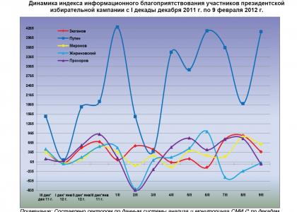 Динамика индекса информационного благоприятствования участников президентской избирательной кампании с I декады декабря 2011 г. по 9 февраля 2012 г.