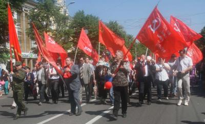 В составе общей колонны, которая с 10-20 до 14-00 часов прошла по улице Республики, была колонна областного отделения КПРФ. С 9 часов у места сбора коммунистов на пересечении улиц Республики и Дзержинского была развернута полевая кухня. Собравшимся были предложены блины, горячий чай, бутерброды. Для этого накануне были приобретены солдатские термоса. Коммунисты Наталья Пыхалова и Наталья Михайлова напекли блины, секретарь райкома КПРФ Восточного округа Александр Бакшаев заготовил три ведра ароматного чая.