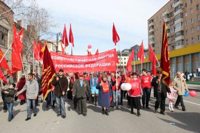Сначала было проведено возложение цветов на мемориале у Вечного огня, расположенном на улице Северной. Затем колонна коммунистов и сторонников партии под красными Знаменами Победы и флагами КПРФ прошла по центральной улице города — Красной.