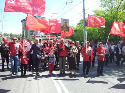 В голове колонны шли депутаты Государственной Думы и Законодательного Собрания края, руководители краевого и городского Комитетов КПРФ, партийные активисты несли транспарант: «Спасибо советскому народу за Победу над фашизмом». Некоторые участники шествия держали в руках фотографии своих родных, воевавших в 1941-45 годах.