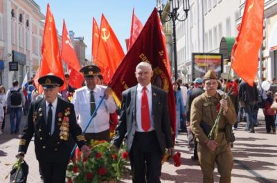 Колонна, возглавляемая 1-м секретарем Комитета нижегородского регионального отделения КПРФ, депутатом Государственной Думы Николаем Рябовым, секретарями обкома КПРФ депутатами Законодательного Собрания Нижегородской области Владиславом Егоровым и Александром Чернигиным, депутатом городской Думы Нижнего Новгорода Александром Перовым, а также членами НРО КПРФ и НРО ЛКСМ РФ, представителями общественных организаций "Союз Советских офицеров", "Дети войны", "Женщины России", прошествовала на территорию нижегородского Кремля к Вечному огню, где после возложения цветов состоялся торжественный митинг, во время которого собравшиеся говорили о великом подвиге советского народа в борьбе с фашистскими захватчиками.