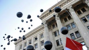 Жители города выпустили в небо над Одессой чёрные воздушные шары.