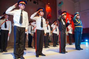 присутствие учащихся кадетской школы-интерната, которые прошли маршем под звук
