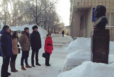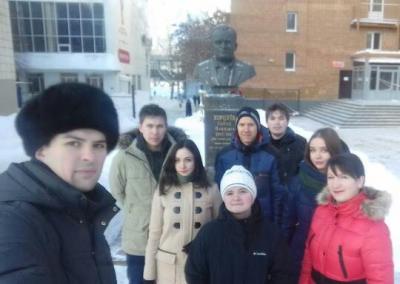 комсомольцы вместе со вторым секретарём ЦК ЛКСМ РФ Натальей Дороховой провели возложение цветов к бюсту академика,
