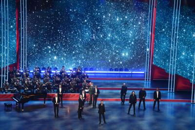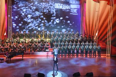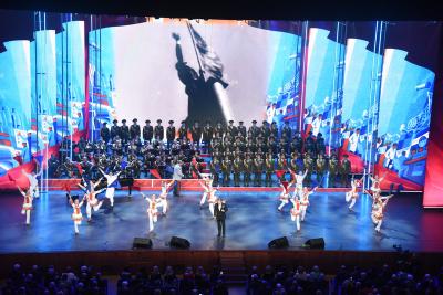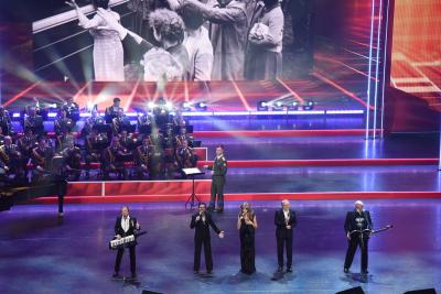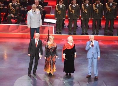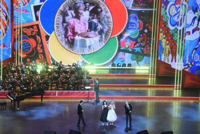 На сцене Кремлевского дворца народный артист РСФСР Лев Лещенко исполнил такие знаменитые композиции, как "Любовь, комсомол и весна" и "Надежда", народная артистка РФ Тамара Гвердцители - песню "Юность моя", а народная артистка Республики Татарстан Алсу выступила с песней "Мой милый, если б не было войны". Участниками праздничного концерта также стали Александр Коган, Юлия Началова, Николай Добронравов, Сергей Захаров, Евгений Кунгуров, группа "Кватро" и другие известные исполнители.