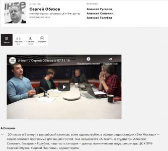 В среду, 7 ноября 2018 года представитель КПРФ Сергей Обухов был приглашен на скандально известную передачу «А-TEAM» на “Эхо Москвы». Три ведущих-либерала принялись оппонировать секретарю ЦК КПРФ. Повод – годовщина Октябрьской революции. В ходе передачи некоторые ее ведущие сделали, на наш взгляд, все для них возможное, чтобы, как мы считаем, манипуляторным путем ввести аудиторию в заблуждение по ряду ключевых вопросов. Но это им не удалось…