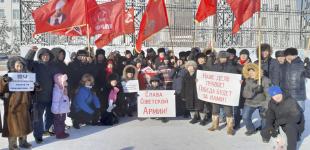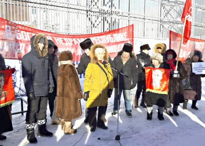 В Якутске 23 февраля состоялся митинг коммунистов и сторонников партии, посвященный 101-й годовщине создания Красной Армии. Несмотря на морозный день, митингующие развернули флаги и плакаты в поддержку армии и против социальной политики российских властей.