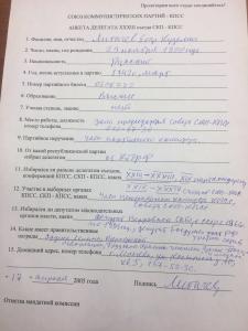 Из анкеты делегата XXXIII Съезда Союза компартий. Дата рождения: 29 ноября 1920 г. Год и месяц вступления в партию: март 1942 г. Партийное поручение: член партийного комитета. Делегатом каких съездов избирался: XXIII – XXVIII съездов КПСС, XIX партконференции, XXIX - XXXIII съездов СКП-КПСС. Избирался ли депутатом законодательных органов власти: депутат Верховного Совета СССР с 1966 по 1991 г., депутат Госдумы РФ третьего созыва. Какие имеете правительственные награды: ордена Ленина, Октябрьской Революции, Отечественной войны, Трудового Красного Знамени, Знак Почёта…