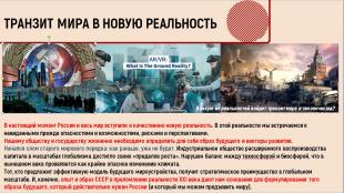 В настоящий момент Россия и весь мир вступили в качественно новую реальность. В этой реальности мы встречаемся с невиданными прежде опасностями и возможностями, рисками и перспективами. Именно поэтому нашему обществу и государству жизненно необходимо определить для себя образ будущего и векторы развития.