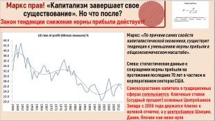 Эти тенденции полтора века назад определил в "Капитале" Карл Маркс, назвав их законом тенденции снижения нормы прибыли: «По причине самих свойств капиталистической экономики, существует тенденция к уменьшению нормы прибыли в общеэкономическом масштабе».