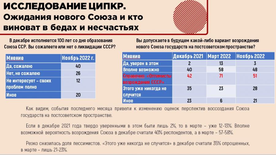 3. ЦИПКР также провел замер, где исследовал ожидания нового Союза в сознании россиян и кто виноват в сегодняшних бедах и несчастьях страны.
