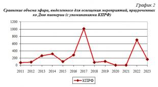 Освещение празднования Дня Пионерии с упоминаниями КПРФ федеральными телеканалами за разные годы можно представить в виде таблицы (Таблица 2).