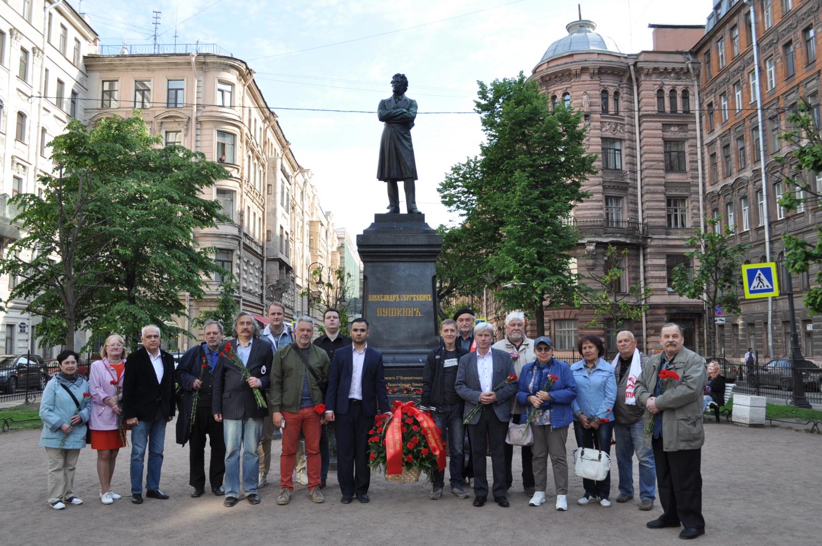 Вечером коммунисты провели возложение цветов к памятнику Пушкину в центре города. Перед собравшимися активистами выступили секретарь горкома КПРФ, заместитель руководителя фракции КПРФ в Законодательном Собрании Санкт-Петербурга Вячеслав Бороденчик, член бюро городского комитета партии Сергей Веснов и член Центрального райкома КПРФ, заместитель директора Центра политических исследований Максим Лагутин. После этого коммунисты возложили к памятнику поэту венок и цветы. Затем, активист Невского районного комитета КПРФ Рафаил Эйвазов посетил Москву, где был награжден дипломом лауреата 1 степени Всероссийского творческого фестиваля в номинации «Песня советских и российских композиторов». Почетную награду коммунисту из Петербурга вручил Председатель ЦК КПРФ Геннадий Зюганов.