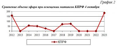 Сравнение объема эфира при освещении митингов КПРФ 4 октября