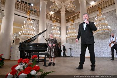 Ведущей вечера была народная артистка России А.М. Вовк. В концертной программе приняли участие народная артистка России А. Пахмутова, народный артист РСФСР Л. Лещенко, народный артист РФ О. Иванов, заслуженный артист РФ Л. Серебренников, заслуженный артист России Ф. Царикати, народный артист РФ З. Тутов, народный артист РФ В. Девятов, народный артист России Ю. Назаров, артист театра и кино Н. Сахаров, лауреаты международных и всероссийских конкурсов М. Карне, Э. Кадыров и другие.