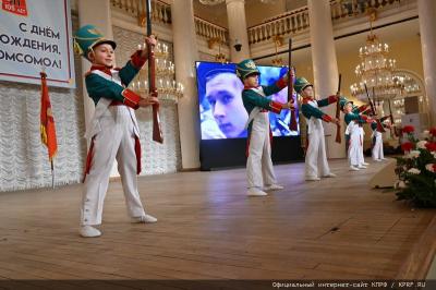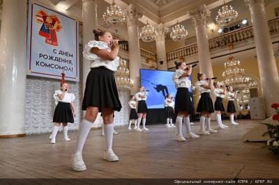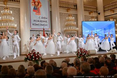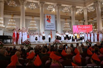28 октября в Москве в Колонном зале Дома Союзов состоялся праздничный концерт, посвященный 105-летию Ленинского Комсомола. Организаторы – КПРФ, ЛКСМ РФ и общественная организация «Воспитанники комсомола – Мое Отечество». Зрителей поздравил со сцены Председатель ЦК КПРФ Г.А. Зюганов.