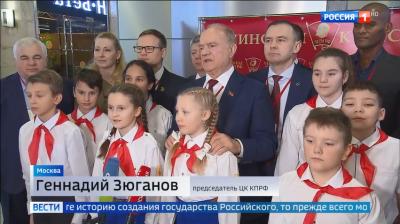 «Россия» уделил Съезду и концерту 83% эфира или 4 минуты 49 секунд, из них 2 минуты 23 секунды пришлось на выступления лидера КПРФ и первого секретаря республиканского комсомола ДНР С. Захарченко. 27 октября «Россия» осветил открытие VII Съезда Комсомола, 28 октября – концерт в московском Доме Союзов. Телеканал отметил церемонию приёма в пионеры, представленную на съезде голограмму В. Ленина и подчеркнул патриотическую составляющую мероприятия.