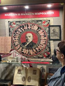 Из Иркутской области наши соратницы прислали два замечательных фотоснимка. Коллектив коммунистов и сторонников партии провел в Иркутском областном комитете КПРФ большое тематическое мероприятие, посвященное, посвященное 100-летию памяти В.И. Ленина и завершающим аккордом события стало фотографирование участников встречи на фоне огромного портрета В. И. Ленину. А из г. Черемухово Иркутской области на конкурс поступила фотография с тематической подборкой музейных экспонатов: значков, исторических книг, рефератов, посвященных В. И. Ленину.
