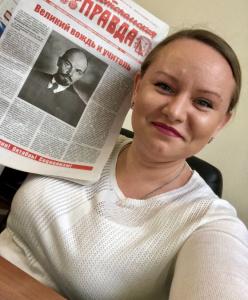 Активистки женского движения из Адыгеи- председатель Совета региональной организации Татьяна Ильинова председатель Совета карельских женщин «красного» женского движения Светлана Мансурова прислали свои фотографии с портретами Ленина, на фоне печатных изданий и символики женского движения. Очень патриотичные фотографии, и даже, как сейчас принято говорить, атмосферные. Многокомпозиционные и эффектные. Серию замечательных фотографий прислала лидер женского движения «Надежда Росси» Орловской областной организации Марина Франко. С удовольствием и гордостью сфотографировались наши соратницы, боевые подруги с образами Владимира Ильича Ленина и Надежды Константиновны Крупской. Даже по фотографиям видно, что подготовка к фотосессии была основательной и серьезной. Так и работает это отделение «Надежды России» вместе со своим лидером Мариной Франко- на совесть.