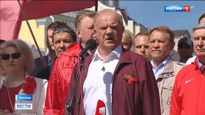 «Первый» выпустил другую цитату Г. Зюганова: «Мы учимся у 1 мая Дня солидарности, у праздника Великой Победы, который в ближайшее время отметим. С этим мы обязательно вновь победим. Да здравствует солидарность, да здравствуют наши будущие победы. Ура, товарищи! С праздником».