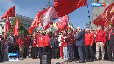«Первый» также выпустил два сюжета о праздновании Первомая с упоминаниями политических партий. Телеканал одной строкой отметил, что «в Москве участие в праздничных митингах приняли лидеры партий» и затем дал слово Г. Зюганову и Л. Слуцкому.