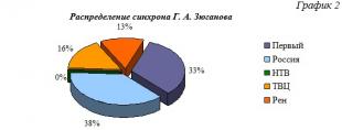 Время синхрона (прямой речи) Г. А. Зюганова при освещении инфоповодов КПРФ распределилось следующим образом (График 2)