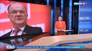 Рен посвятил юбилею лидера КПРФ 16 минут 19 секунд эфира или 13% эфира. НТВ упомянул только о награждении Г. Зюганова 27 июня в течение 44 секунд или 1% эфира.