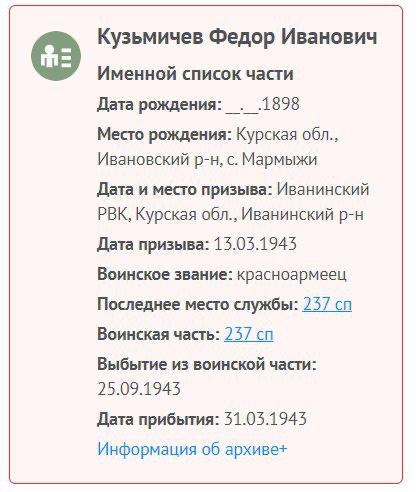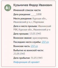 Кузьмичев Федор Иванович (1898-1943), брат моего деда по матери.