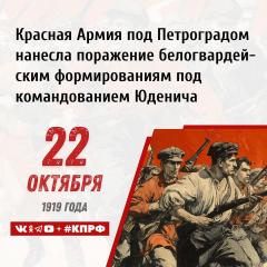 21 октября 1919 года белогвардейское наступление было остановлено, после чего началось контрнаступление Красной Армии. На следующий день фронт Юденича был прорван. Коренное изменение обстановки произошло 24 октября после перехода в наступление 15-й армии РККА. За несколько дней советские войска сумели глубоко вклиниться в позиции белогвардейцев и 3 ноября овладели Гатчиной. После этого началось паническое отступление белой армии, завершившееся оставлением 14 ноября Ямбурга.