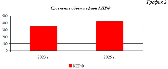 Таким образом, увеличился объём эфира, посвящённого годовщине создания Комсомола, но снизилось число каналов, принявших участие в освещении мероприятий КПРФ.