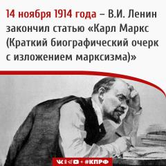 Весной 1914 года руководитель большевиков Владимир Ильич Ленин начал работу над кратким изложением биографии Карла Маркса – создателя научного коммунизма. Работа велась с целью предоставления широким массам возможности получить знания о создателе марксизма и об основных положениях его теории.