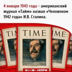 4 января 1943 года американский журнал «Тайм» назвал «Человеком 1942 года» И.В. Сталина.