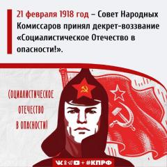21 февраля 1918 года – Совет Народных Комиссаров принял декрет-воззвание «Социалистическое Отечество в опасности!».